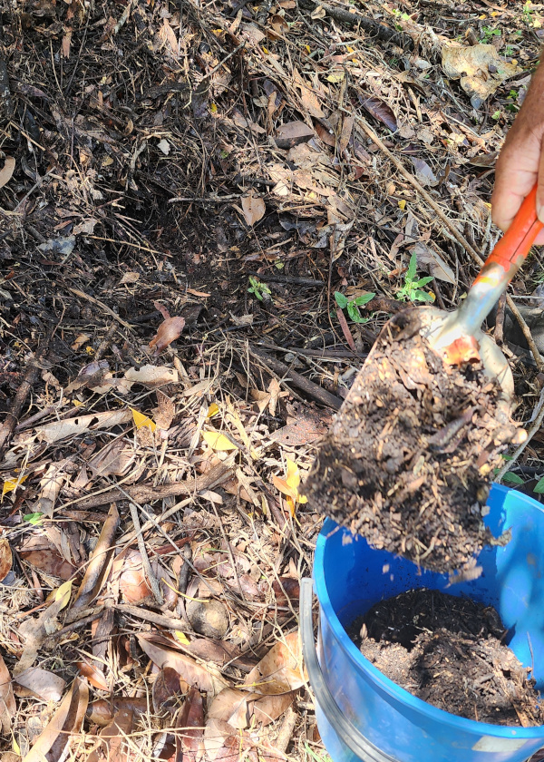 A bush turkey nest is a good source of a healthy and active soil biology, as they rely on it to hatch their eggs. A bush turkey’s nest contains soil from up to thirty meters away. We recommend checking out creek banks as they have many different plant species.