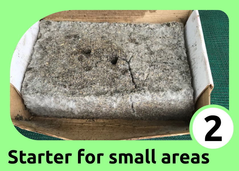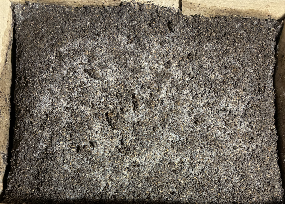 Place the mix 8–10 cm deep in a cardboard box and compress it gently, like compressing soil around seedlings, as excess compaction will exclude air and stop desirable biology growing. Put a wet cloth or towel on top of the mix to maintain humidity and temperature.