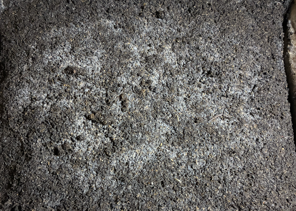 After the third or fourth day, you should expect to see fungal growth forming throughout the mixture and on the surface. These small white or grey threads are the mycelium or fungal growth we are looking for. After a week, this should result in thick fungal growth on the surface and should have spread throughout the entire block.