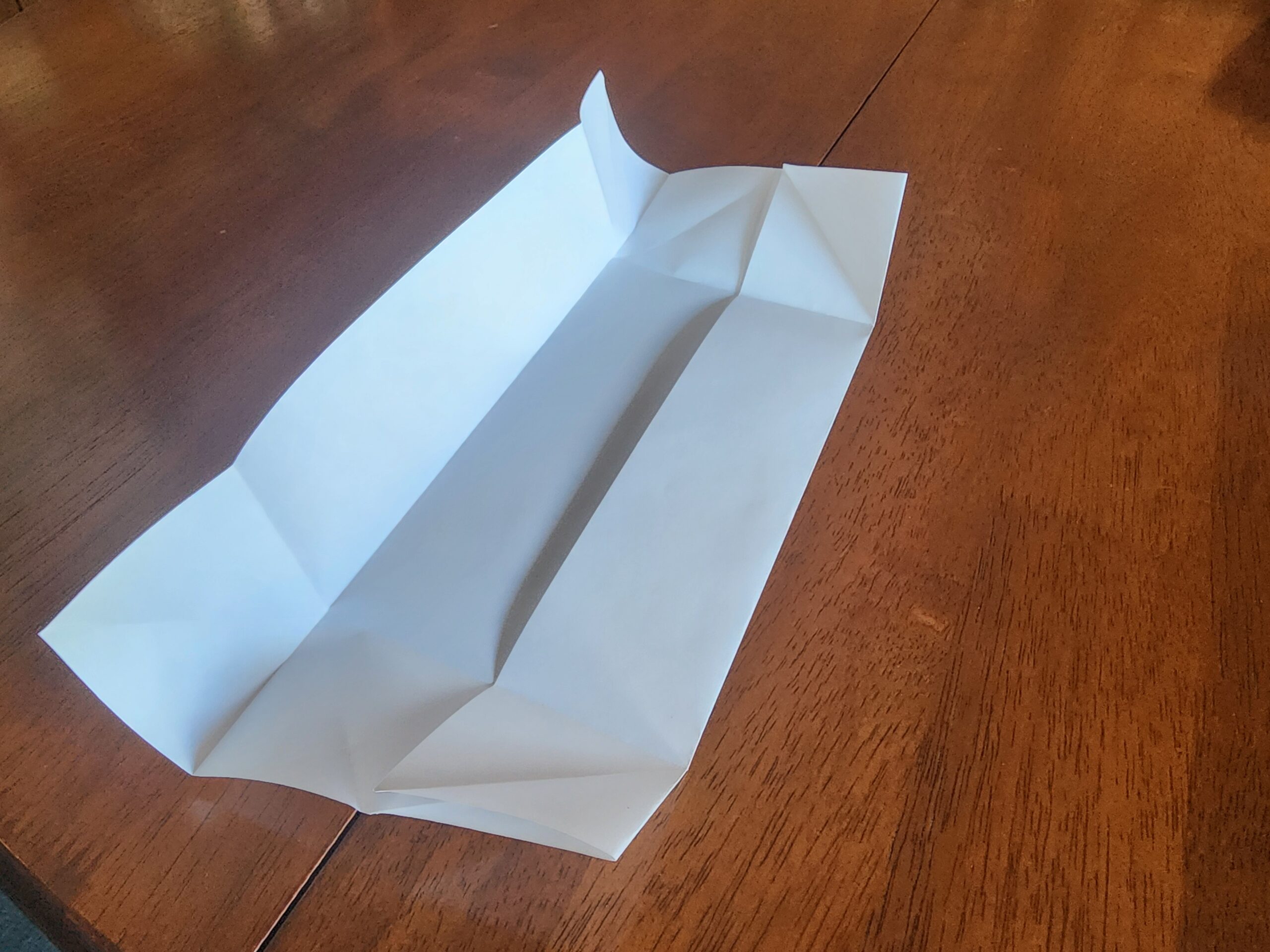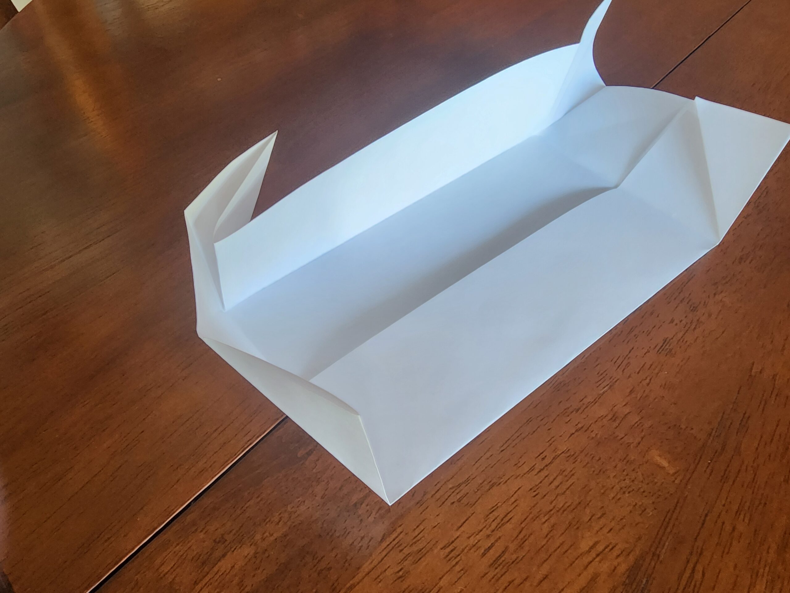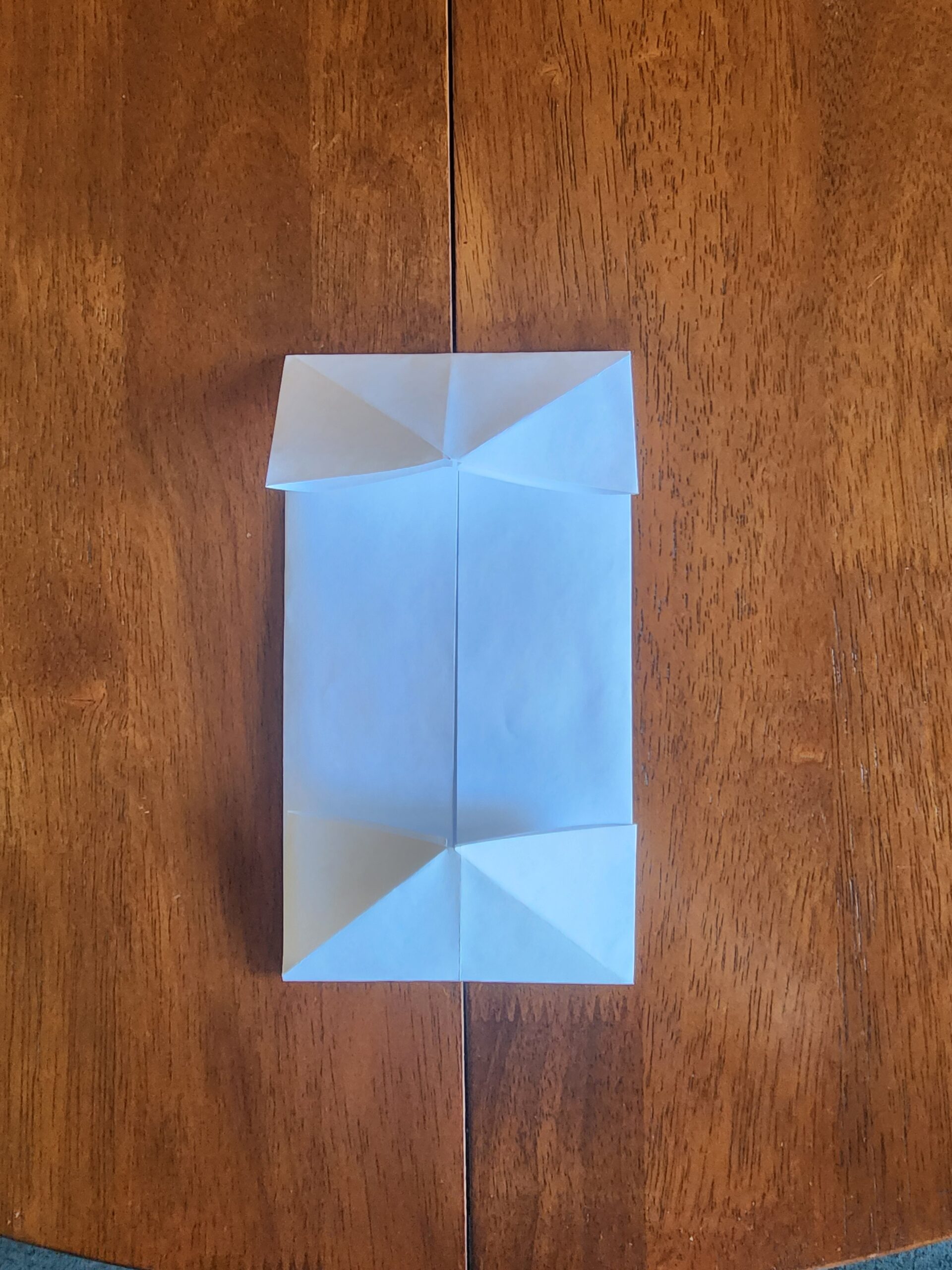 Fold over the short sides by 40cm, once again pressing hard to make a crease. Fold each corner in, crease hard, then unfold them, we will use these creases later to help fold the plastic into its final position.