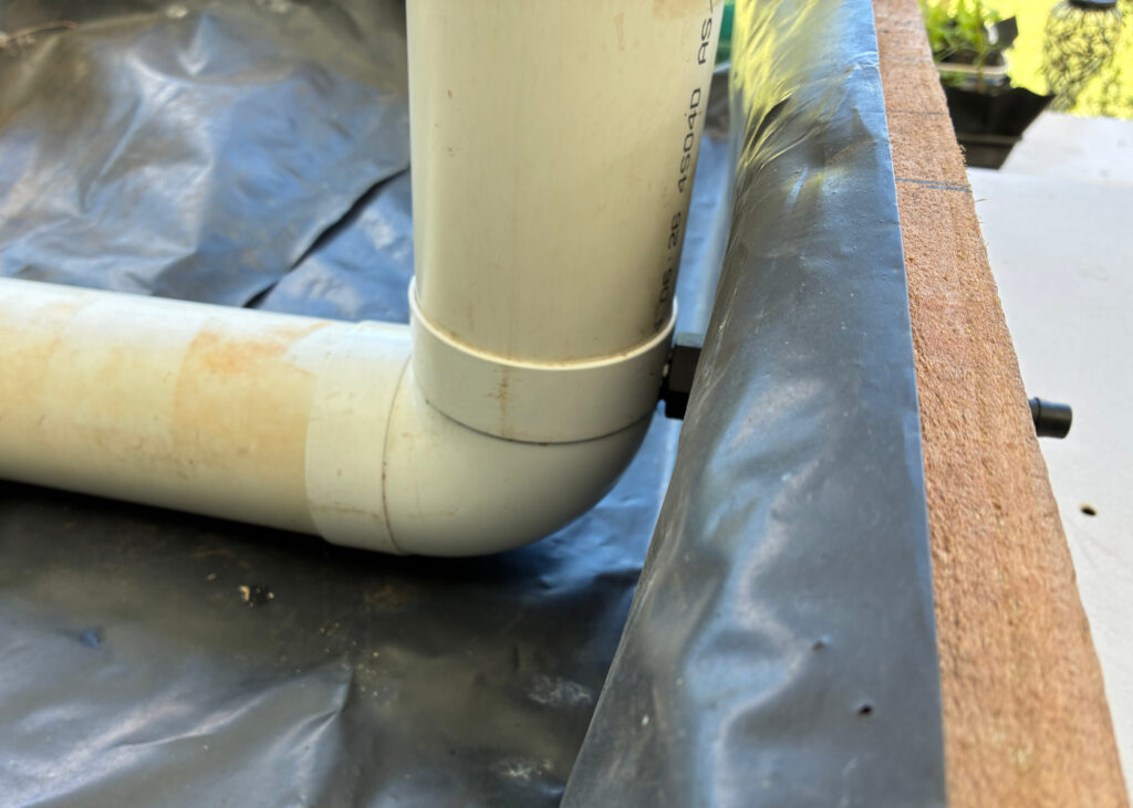 The overflow allows excess water to drain from the bed. By connecting the overflow to the reservoir directly, we eliminate the risk of the overflow clogging, keeping the bed safe even during heavy rainfall.